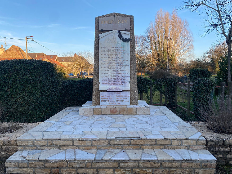 La plaque commémorative se situe au pied de la stèle érigée rue de la Motte dans le hameau de Gigny Photo JM Bordet